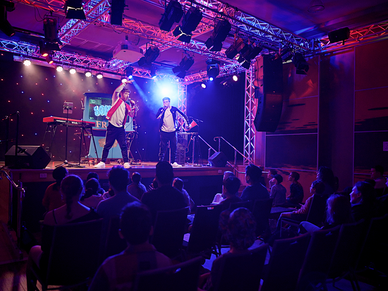 Join global beat-boxing phenomenon Tom Thum (680K TikTok & 240K Insta followers) and keys wizard Tnee Dyer in Permission Granted, a 50minute musical show for children aged 6-14. Transform everyday noises into mind-blowing beats. Witness beat-building in action against a dynamic visual aesthetic, as children blast the noise-o-meter, drop samples into the golden mic, and dive deep into their voice boxes to discover a whole new world in a playground of sound.